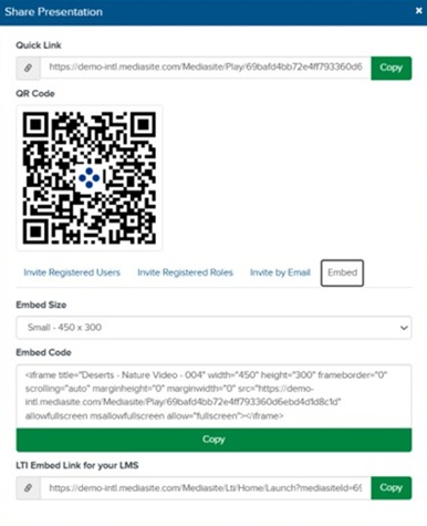 You can copy the code needed to embed the presentation in a website or Learning Management System (LMS).