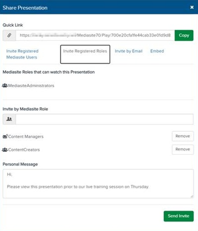 - Click Invite Registered Roles in the Share Presentation dialog.